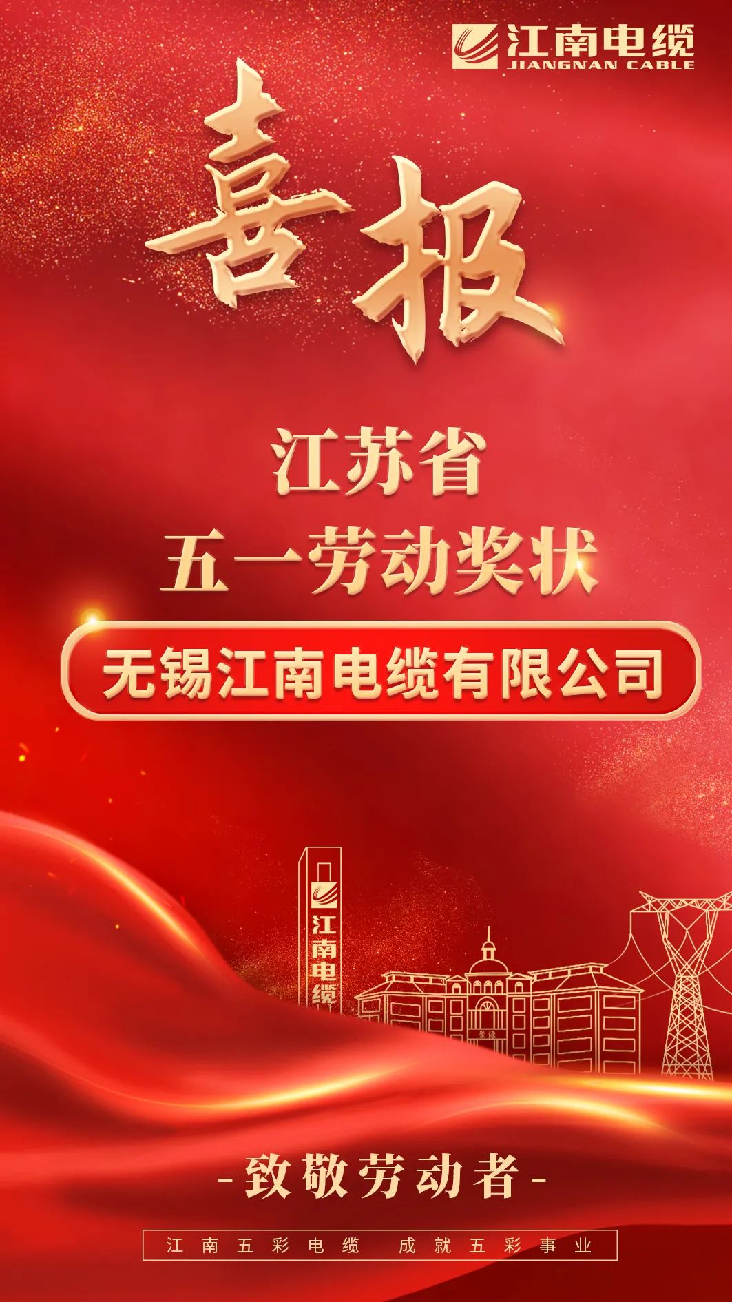 強(qiáng)!江南電纜榮獲江蘇省五一勞動(dòng)獎(jiǎng)狀!