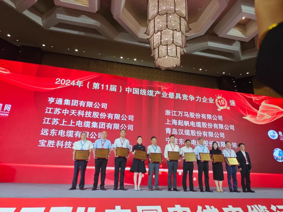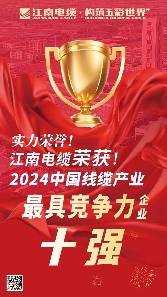 【喜報(bào)】江南電纜榮獲2024中國線纜產(chǎn)業(yè)最具競爭力企業(yè)十強(qiáng)