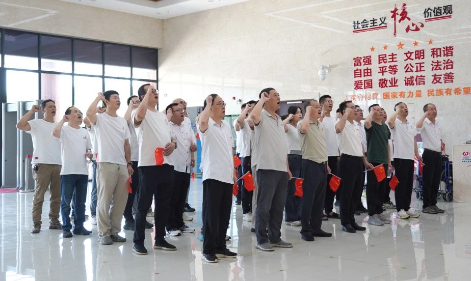 全體黨員列隊(duì)肅立,重溫入黨誓詞,鏗鏘誓言在場館間久久回蕩。