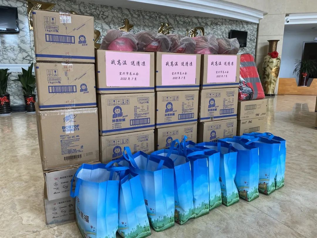 戰(zhàn)高溫、送清涼,工會和您在一起,把防暑降溫物資送到員工的手中,把清涼和關(guān)愛送到員工心坎上。