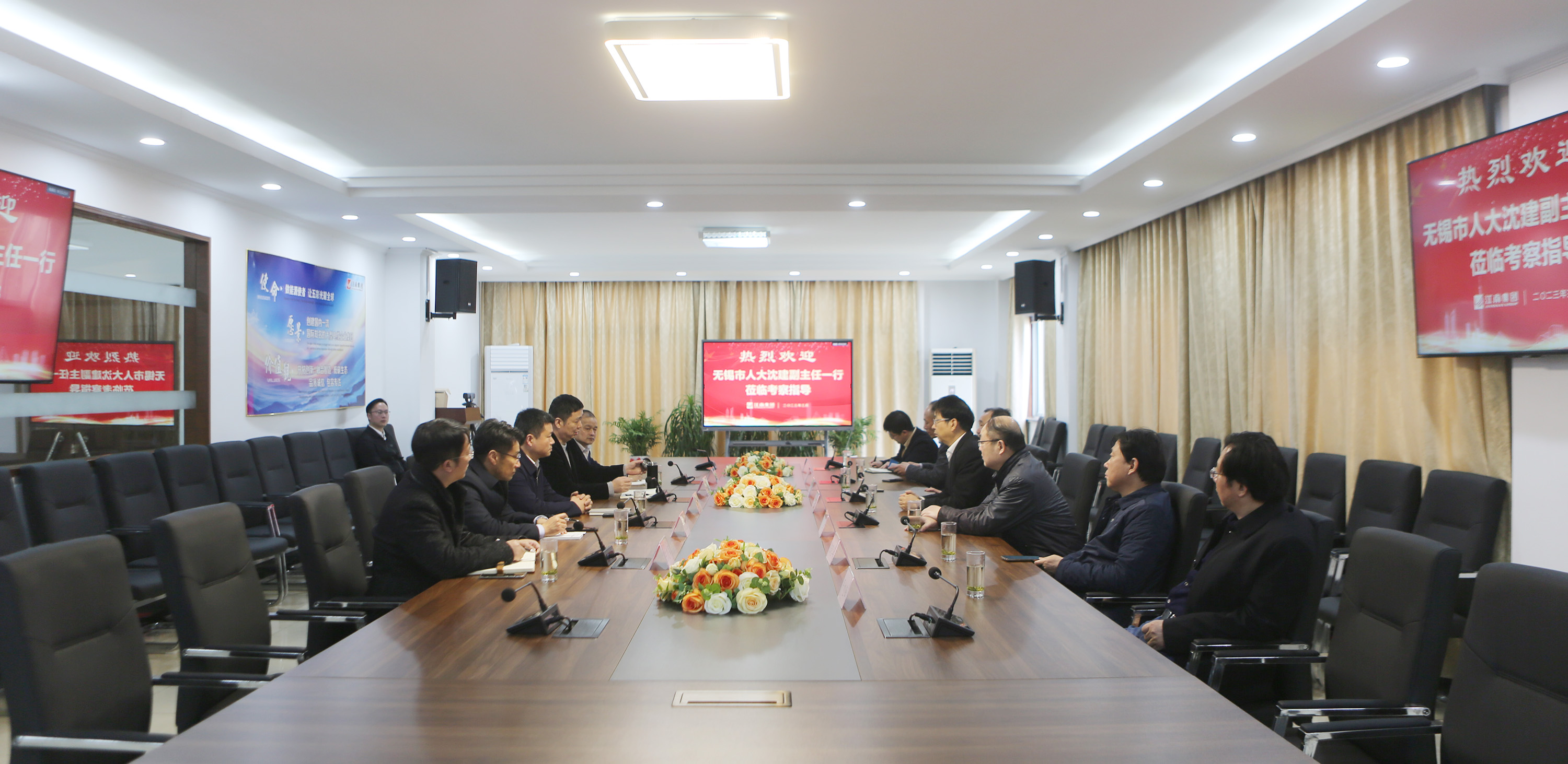 On March 20, Shen Jian, deputy director of the Standing Committee of Wuxi Municipal People's Congress, Huang Ronghua, member of the Party Group, Chen Xiaohua, director of the Economic Working Committee, Lv Guofeng, director of the Economic Working Committee and other leaders visited Jiangnan for investigation and research. He Xiaojin, Deputy Director of the Standing Committee and deputy Secretary of the Party Group of Yixing Municipal People's Congress, Chen Weineng, deputy mayor and Secretary of the Party Committee of Guanlin Town, Yan Xufeng, Director of the Financial and Economic Working Committee of the Standing Committee of the Municipal People's Congress, Huang Jiaqing, deputy director of the Budget Supervision Section, Wang Yudong, deputy secretary of the Party Committee of Guanlin Town, etc., accompanied them.Chairman of the Board of Directors Chu Hui, rotating general manager Jiang Yongwei, vice general manager Chen Xiaojun and other warm reception.